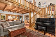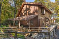 Vaulted ceilingsMultiple covered porchesPeaceful wooded settingRelax by the creekStunning stone fireplace