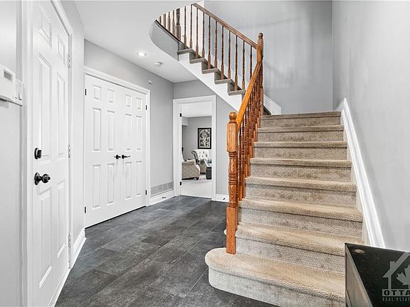 Gorgeous, spacious and bright 4 bedroom 4 baths semi detached home with double car garage offering tons of value in Kanata South. Meticulously maintained and tastefully updated this home is just move in ready! First level has a big living space with a full bath where you access to the beautiful backyard oasis with composite deck and beautiful greenery. A circular staircase takes you to the 2nd level with 2 more living spaces, dining room, big functional kitchen with tons of cabinets and counter space, and an additional outdoor living (balcony). Third level has 3 great sized bedrooms and one smaller one (office or baby room) with convenient laundry room as well. All major updates haven been done: Roof 2018, Furnace and AC 2022. Designer electric fireplace is included. Video attached with aerial views of the beautiful community. 2023-09-29