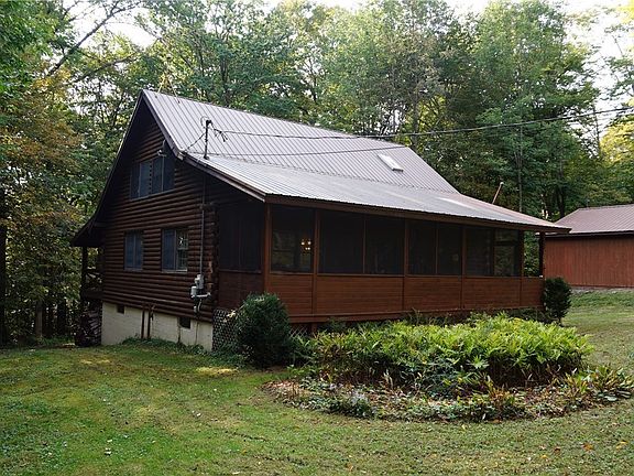 This log cabin is in the perfect spot for year round living or recreational use. Property offers direct access to both ATV & snowmobile trails along with easy year round access on a paved and plowed road. Spacious covered & screened front porch sets up the entry for this cabin. Inside you'll find cathedral ceilings in the living room with exposed log beams for an authentic rustic feel. Living room has a pellet & wood stove plus it's semi-open to the kitchen. Kitchen is eat-in with pantry and door to covered back porch. First floor main bathroom with jacuzzi tub and laundry. Second floor has two bedrooms, both with skylights. Full walk-out basement provides easy storage for pellets plus exterior door leads to covered storage for the wood. 4 car detached garage offers plenty of storage for the toys. This is the last home on CCC Dr and is bordered by state land plus located just seconds to the Salmon River Reservoir.