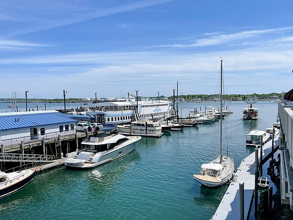 The most dramatic waterfront living in the Old Port, Chandler's Wharf, is a renowned and exclusive gated community on a private pier with expansive views of Casco Bay, 24-hour maintenance and security, a marina, and just steps to Portland's finest shops, galleries, and famous restaurants. This rare and coveted ''end-unit'' has been beautifully renovated and offers over 1,700 square feet, with multiple private decks overlooking the harbor to enjoy saltwater breezes and watch seaport activities. A new gourmet kitchen with stainless appliances and quartz counters opens to a family room and dining area with a wood-burning fireplace that is seldom found in urban condos, and light streams throughout the first floor from a large waterside bay window flanked by french doors. Retreat to a master suite with its own balcony to watch the sunrise, and take advantage of a third floor ideal for a home office, gym, or third bedroom. Additionally, this unit has two deeded garage parking spaces, a new hot water heater, guard service, a common courtyard, and is pet-friendly.