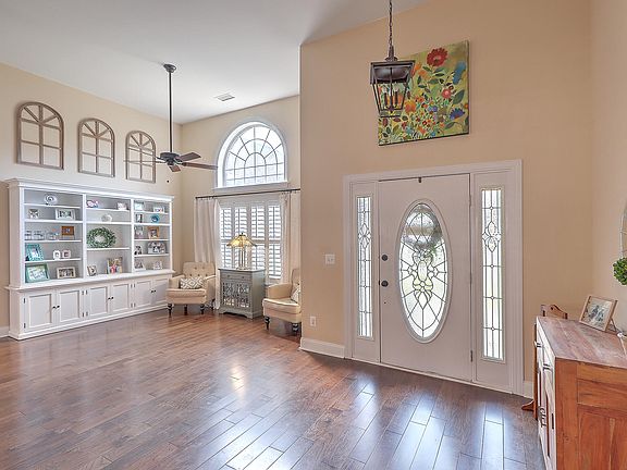 This is an amazing one story in the Hamlets. As you approach you will notice the landscaped yard, 2-car garage and corner lot. Upon entering you will notice the beautiful hardwood flooring throughout the main living area. The large open floor plan offers a high ceiling in the family room, dining room and foyer. The formal dining area is currently being used as a sitting area. It has a sunburst window and ceiling fan. The family room has a ceiling fan and gas fireplace. The kitchen features white cabinets with crown molding and above display area, tile backsplash and granite countertops with a breakfast bar as well as dual wall ovens, smooth electric cooktop and a built-in microwave plus a dishwasher. The dining area has multiple windows for lots of natural lighting. As you make your way do down the hallway you find the first bedroom has a cathedral ceiling, ceiling fan and sunburst window. The second bedroom has a ceiling fan and cozy carpet. The master bedroom has a tray ceiling with a ceiling fan and cozy carpet. The master bathroom has a dual sink vanity, separate shower and soaking tub as well as a large walk-in closet and a water closet. The FROG / 4th bedroom or flex space has a ceiling fan, cozy carpet and a full bathroom with a walk-in shower. The laundry closet is conveniently located as you enter through the garage. The long deck is perfect for outdoor entertaining. The wooden fence makes it great for pets. Other features include: plantation shutters, new fence 2020, new carpet 2020, hardwood flooring installed 2018, water heater 2019. Crowfield is a great community with a great neighborhood online network that allows neighbors to share information as well as other updates and social events. Amenities include: Golf, Pool, Tennis Courts, Play Parks, and Walking/Biking Trails. Plus convenient to restaurants, shopping and medical offices.
