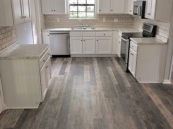 Immaculate and Move-In Ready! This ONE level, 3 bedroom, 2 bath home has been totally remodeled and is straight out of HG TV! From the pale grey walls to the luxury vinyl plank and tile floors, this home will WOW you. Pristine kitchen has white cabinets, NEW stainless steel French door refrigerator, dishwasher, electric range, microwave and smart tile backsplash. Just off the kitchen is a huge, walk-in pantry and laundry room, complete with a NEW stack washer/dryer. Large living room has wood-burning fireplace with raised hearth, painted mantle and brick surround. Dining area opens to kitchen and living room creating a spacious, open concept environment. French doors open off the dining area into a cozy family room and office area. Windows have blinds and most of the drapes remain with the home. Exterior of home is maintenance-free vinyl and roof is NEW (2021) and bronze fortified for lower insurance. HVAC unit was replaced in 2021 & Nest thermostat added. Back yard includes a nice NEW patio (2022), privacy fence & fire-it. Home is located very close to the Lawson Road entrance and is very close to Daphne High School. Lake Forest Subdivision amenities include: golf course, stables, tennis courts, pools, dry boat storage, and restaurant overlooking Mobile Bay!