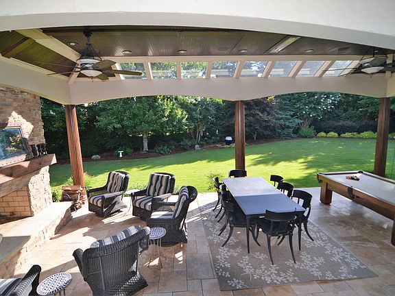 This custom home boasts beautifully designed indoor/outdoor living space, perfect for cool NC Spring nights! New Designer paint inside & out. 3 season room w/ skylights & wall2wall windows, opens into the covered outdoor patio w/wood burning fireplace & outdoor kitchen! 1st flr Main BR! Gourmet kitchen w/ 2 ovens, SS appliances, tons of counter space! Add a pool and still have a yard! Walking dist. to Green Hope Elem. 3 mi to Wegmans! Preston offers playgrounds, pool, member-only golf club & much more!