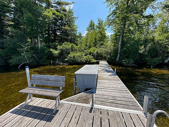 GREAT POND Beautiful 4BR/3BA contemporary home privately secluded on a large 16.3AC lot with 732' of sandy bottom lake frontage with long views up Great Pond! This light filled home has a wonderful lofty ceilings in the living room with beautiful hardwood floors, a formal dining area overlooking the deck, kitchen with peninsula that is open to a living room with a nice wood stove. Large laundry room and half bath on the main floor with direct access to attached 2-car garage. Above is the primary ensuite with its own Juliette private balcony, full bath with shower and jetted tub and large closet, as well as three good side guest bedrooms each with a closet and a full bath with shower/tub unit. Large dry basement for storage with a garage door perfect for storing your boats and water toys! Wonderful year-round retreat where you can get away from it all, but close by car or boat to Belgrade Village amenities!