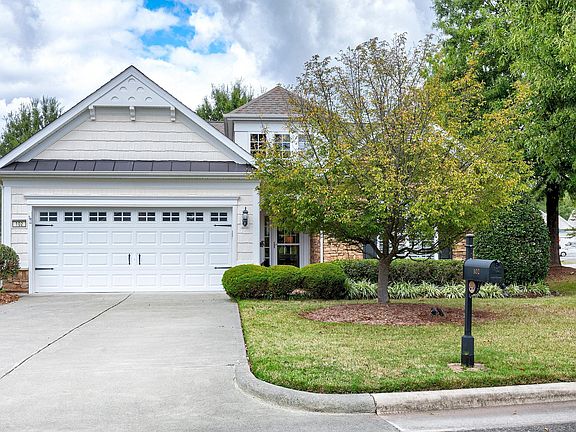 PRICE JUST REDUCED on this Fabulous ONE LEVEL LIVING home in fantastic Carolina Preserve by Dell Webb! You will notice the BRIGHT SUNNY SPACES as you enter the 2-STORY FOYER. Note the HARDWOOD FLOORS throughout the entire home, except for the 3 bedrooms! You will admire the CHAIR RAIL AND PICTURE FRAME MOLDINGS, the OPEN FLOORPLAN, and the great layout. The Kitchen has tons of cabinet and counter space, pendant lights, GRANITE COUNTER TOPS, pull out drawers, and a nice BREAKFAST NOOK with a built-in home office desk! There is a separate DEN/OFFICE just off the DINING AREA, plus a wonderful SUNROOM off the Family Room. There is a GAS LOG FIREPLACE in the FAMILY ROOM. The design of the home has good separation between the Primary Suite and the secondary bedrooms. The Primary BR has great windows, a trey ceiling, ceiling fan, big primary closet and is big! The Primary bath has dual vanities, a garden tub, a separate shower, and tile floor! There are lots of extras like the PLANTATION SHUTTERS throughout, the AMAZING BACK PATIO/ Pergola area, the coated garage floor, and the built in SONOS speakers in the Family Room ceiling! GAS HEAT insures warmth on winter days. The water heater is gas too. The laundry is off the Kitchen so multi-tasking is easy. The Laundry has built-in cabinets and a wash sink! There is a smooth top range, dishwasher, microwave, disposal, and the stainless-steel refrigerator stays! One of the best features of this home is the private patio area with a great garden space, stonework walls, and a Pergola providing shade in summer. This truly is a place for relaxing and enjoying this beautiful neighborhood. Carolina Preserve offers world class amenities, including access to fitness center, indoor and outdoor swimming pools, clubhouse, pickleball courts, tennis courts, bocce courts, walking and biking trails, and numerous social clubs.