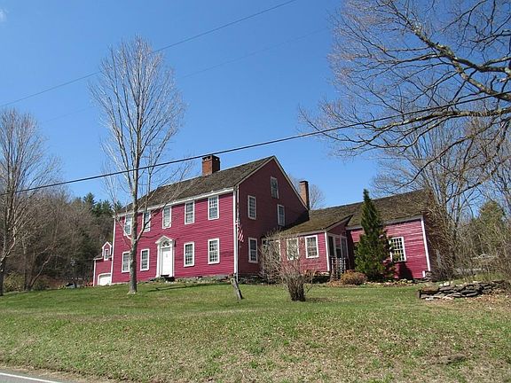 Move to the Hills!! Authentic 1768 antique colonial farm house set on over 90 acres of pristine land. The antique home has preserved most of the original character with center chimney and 6 fireplaces. The structure is in extremely good condition, Most of the original woodwork and integrity has been preserved. The First floor has a great open comfortable space for the kitchen and gathering area, with a stone hearth and an impressive fireplace mantel. Formal dining room and a library, The second floor has 2 bedrooms and a sitting room which all have fireplaces. A third bedroom and an office as well. An attached 3 car garage with a second floor with plenty of storage, The land is incredible with a mixture of open pasture, fruit trees and forest. 45 acres is on the side of the road with the home and 45 acres with a magnificent barn are across the road. The land has quite a bit of frontage which allows for numerous possibilities. These opportunities don't come up often.