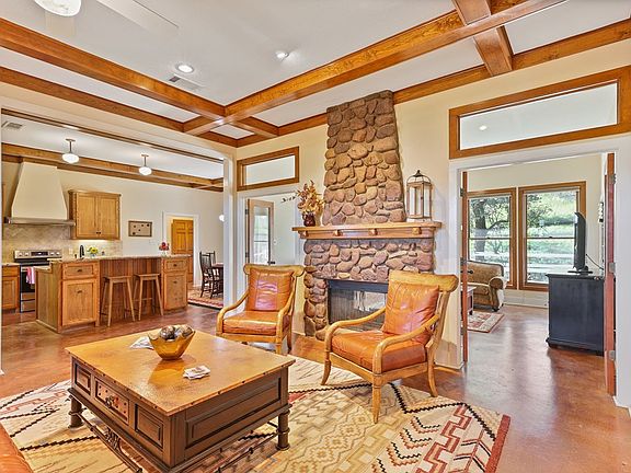 Three bedrooms, two bath 2,200+/-sf stucco home on 5.58 acres. Convenient to the subdivision entrance. Panoramic mountain views. Stained concrete floors, open floor plan, LA and den share 2-sided rock faced gas FP. Formal dining area. Gourmet kitchen, granite counters, ss appliances & informal dining area. Spacious sequestered primary suite, sitting area, private deck, two dressing areas with own vanity, storage, walk-in closet. Over-sized 2 car garage with storage. Observatory and storage shed.