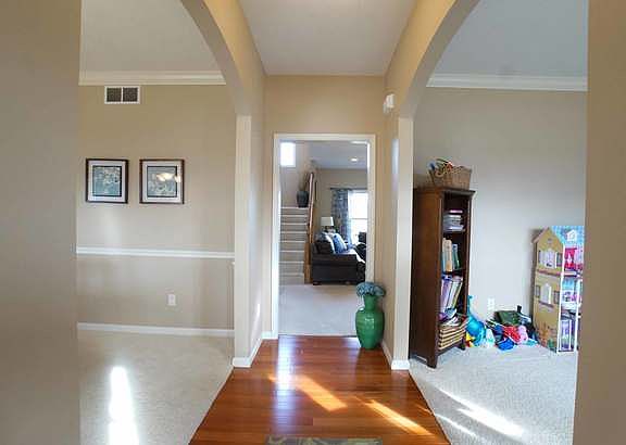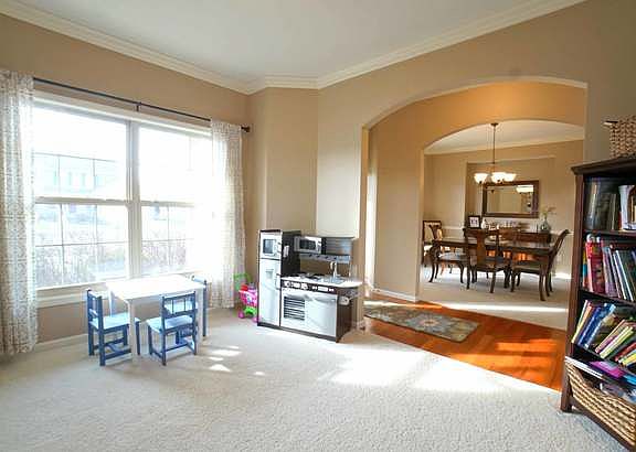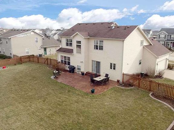Wonderful Signature Built Wellington Plan in Prairie Fields Sub on corner lot with side load garage. This plan offers hardwood entry, 9 ft ceilings and 4 bedrooms on a basement foundation. Formal living and dining rooms, family room with gas fireplace. Kitchen is complete with stainless appliances, center island and walk in pantry. Sliding doors from the breakfast nook open to the stamped concrete patio in the large fenced back yard, which includes garden shed. The rear staircase is flooded with natural light that leads upstairs to the 4 bedrooms. Large master suite with cathedral ceilings, shower, whirlpool tub, dual sinks and walk in closet. Near Carrie Busey Elementary School and parks. Full basement for storage and future expansion. Living room can be used as office or play area.