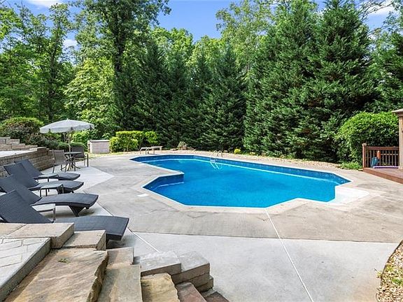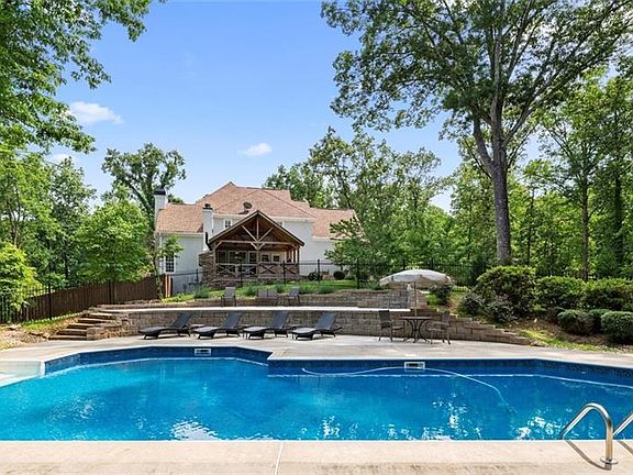 Your own little piece of Cherokee County Heaven so conveniently located to Downtown Canton, I-575, Northside-Cherokee, shopping and dining and located in award-winning Cherokee County School System. This five acre estate is in a subdivision with no HOA and beautifully forested, large lots with exceptionally-built homes. This home was designed by award-winning architect Frank Betz. You're going to feel like you are always on vacation living in this home. Step inside front door and large dining room is located on left, comfortably-sized family room with great natural light coming through windows and doors out to large back deck. Master suite is spacious & takes up the entire right side of main floor. Sitting area in master has access to back deck. Master bath is spacious! Kitchen has new stainless appliances looks into keeping room. Loads of counter space. Breakfast area accesses side grilling porch/outdoor kitchen with Chicago Brick Oven, fireplace, built-in grill, frig and cable for TV. Great view of 24,000 gallon, in-ground 8 ft. deep pool with stamped deck surround & cabana for escaping the sun. There's a half-bath convenient to outdoor living spaces. From grilling porch, you have immediate access to the stone patio-fire pit area. So many outdoor spaces to enjoy the great living on this property. But wait...there's more! Upstairs are 3 bedrooms & 2 baths. Terrace has large family room, wet bar, office, workout room, bedroom & full bath. Have a boat, four-wheelers or an RV that you need to store? There's a large level driveway located on left side of the property that has electrical outlet for your toys! Main garage is side-loading and located on front of porch. Additional driveway to right of home to second 2-car garage on terrace level.