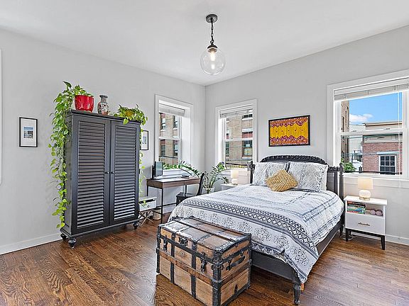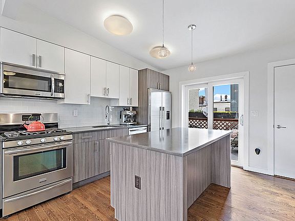 Step into your delightfully sunlit, top-floor corner condo with windows on three sides and enjoy the outdoors on your private terrace. Just 2 flights up, you will be welcomed by European inspired finishes within this 5 year old, 6 unit building. Here you will find high ceilings, oak floors, lots of windows, in-unit laundry, Italian style kitchen with Ceaserstone counters and island, white glass subway tile backsplash, and stainless gas appliances. An ocean-inspired bath with speckled glass tiles, porcelain floors, and custom glass-encased shower. A spacious primary bedroom with additional space for an office or nursery plus an additional bedroom. A large (over 500 sqft) storage area and bike storage within the building! Tucked away on a quiet block, but still steps from all the excitement! Across the street from PS 5 elementary, Prato bakery and more one block away. Modern elegance in the booming Village Neighborhood. This one was worth the wait!