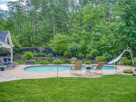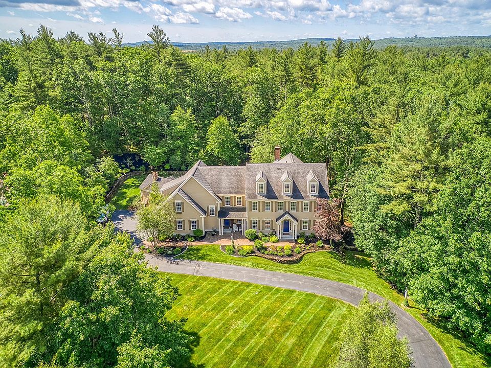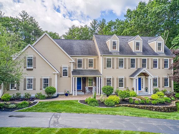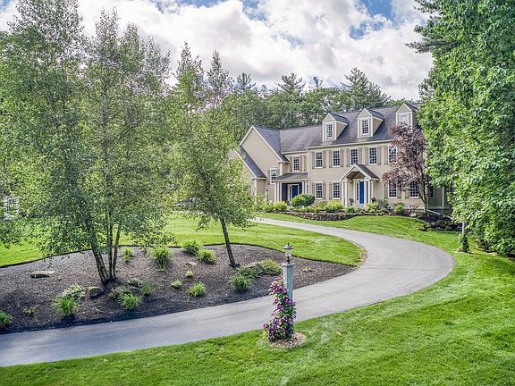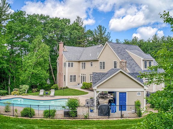 Call or Text Marianna Vis (603) 860-8115 Privately sited on 2.19 professionally landscaped acres, this gracious 6,266 sq ft custom home in Bedford’s Sheffield Woods neighborhood (Peter Woodbury School) is perfect for entertaining in every season! Enter through the portico to a soaring 2-story foyer, leading your guests to the formal and informal living spaces. The “Master Chef’s” dream kitchen, designed for entertaining, has 2 expansive islands with granite and tiger-wood surfaces, separately zoned for creating masterpieces and for dining with the family/friends at the heart of the home. Custom cabinetry, a copper farmers sink, stainless appliances, wine fridge, and premier 6-burner gas stove are just some of the amenities. The kitchen is open to the spacious 25 x 17 family room, which features a floor-to-ceiling fieldstone wood burning fireplace/pellet stove insert. The 2nd floor master suite has a multi-tiered tray ceiling, private sitting room with coffee barista bar, 2 huge walk-in closets, and a full bath with dual vessel bowl vanity, jetted tub, and a custom multi-head glass shower. The guest suite has a private ¾ bath and 2 additional bedrooms share a Jack-&-Jill full bath. There is also an au-paire/in-law suite on the 2nd floor (with separate entrance but connecting to the 2nd floor), with Bedroom, sitting room, kitchenette & private full bath. The walkout lower level offers a flexible-use recreational area with approx.. 1500 sq ft of living space. SUMMER FUN: The natural and private setting embraces the kidney shaped heated Gunite pool, complete with slide! The WOW semi enclosed pool cabana has a stone fireplace and an adjoining extensive wet bar area, both offering summer shade and night time fun with friends and family. A perfect HOME to relax and enjoy family and friends! VISit today!