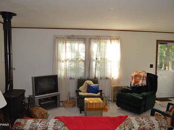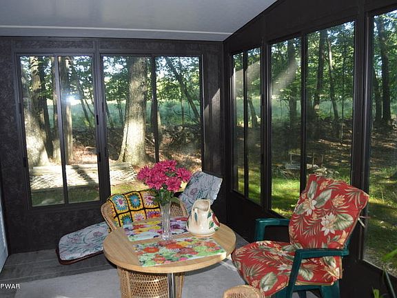 Tucked in the trees, this adorable, budget friendly get away is ready for you!!! With 3 bedrooms, living room with wood stove and bright and cheery glass sunroom on a large 1.39 acre level lot. Enjoy the pool or lake at Pocono Mountain Woodland Lakes - relaxation and mountain tranquility are waiting for you.