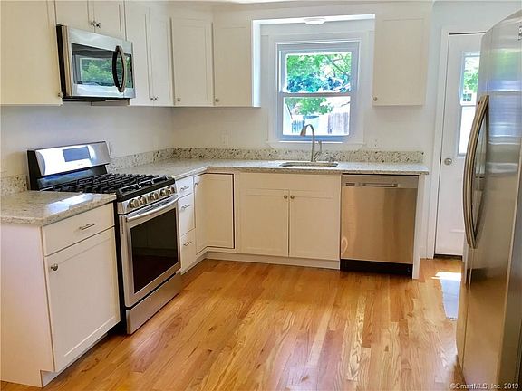 Wonderful and newly remodeled four bedroom and two full bath cape, ready for a new owner to enjoy. This home has gleaming hardwood floors, two newly remodeled bathrooms, and has been freshly painted throughout. There is a brand new kitchen, with granite counter tops, stainless steel appliances, and natural gas for cooking. This home also features a brand new roof and siding, central air, and public water/sewer. There is a spacious yard with two sheds for storage and a deck off the home as well.