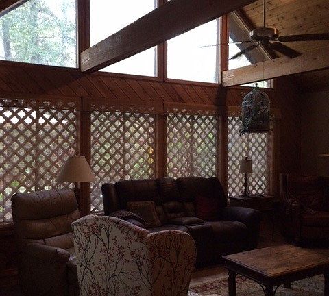 REDUCED: Seven Pines. 3 bedroom, 2 bath. View the beautiful wooded scenery from picture window in den or while lounging on outdoor deck. Relax by fireplace in den with vaulted ceiling. Large master bedroom with sitting area and walk-in closet.