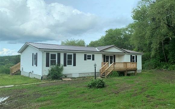 This thoroughly renovated three bedroom two bath home is amazing! Situated on a rural 1.88 acre lot, the view is amazing! Entertain on the large rear deck or come inside to a wonderful open floor plan! New windows, new metal roof, and completely new throughout--all that is missing is YOU! Stainless steel appliances, an open floor plan with split bedrooms (master suite on one side of the home and two bedrooms and a bath on the other side). Each secondary bedroom has two closets and the master suite features a walk-in closet. A full walk out basement, too. This is not your typical mobile home!