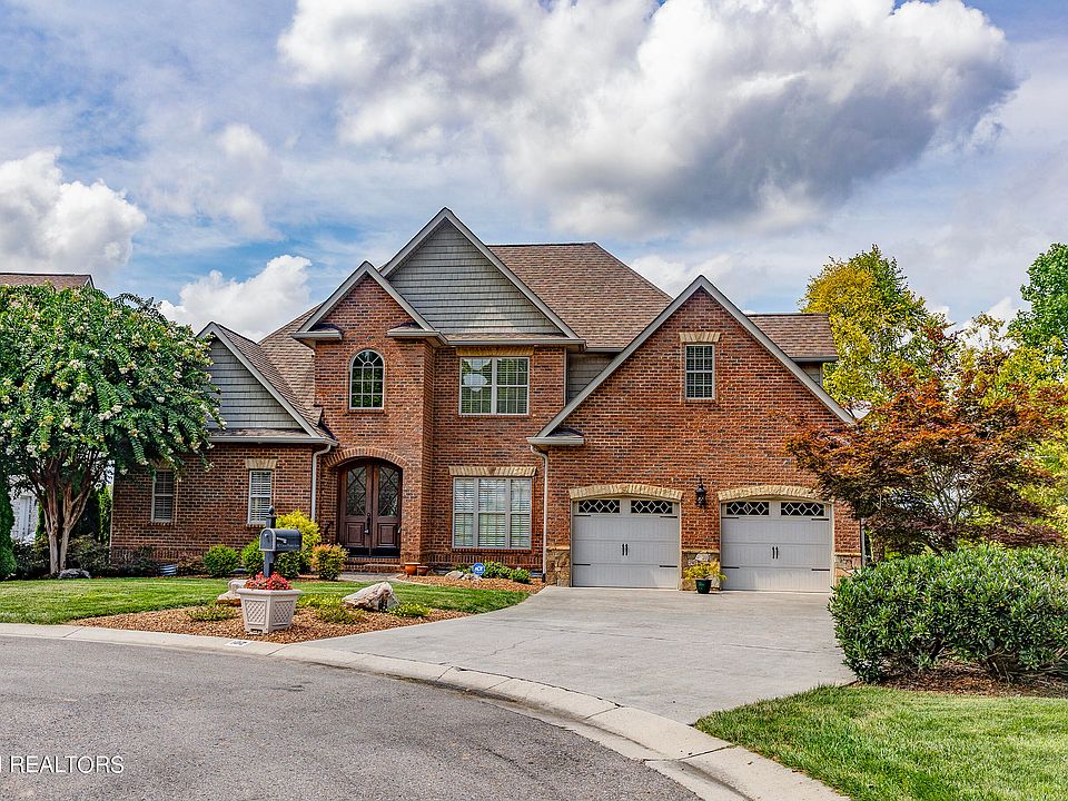 With numerous custom features and a stunning view of the Cumberland Mountains, this beautiful, move-in ready, contemporary home in the Crossroads at Wolf Creek is calling your name! Situated on a cul-de-sac, 102 Crest Pointe Ln. sits high above the neighborhood and commands a sweeping view northward. Inside, you will be greeted with a combination of luxury and elegance in every room. As you enter the home through the arched double front doors, the open floor plan of the main level immediately emerges. The spacious dining room to your right flows effortlessly into the great room/living room area, which boasts large picture windows and a beautiful two-story stone, gas log fireplace with built-in shelves on both sides. A few steps away, the custom kitchen includes granite countertops, custom glazed cabinetry, and a tile backsplash. Kitchen appliances include refrigerator and dishwasher that were installed in August 2022, and a KitchenAid 5-burner, dual fuel convection oven with warming drawer that was installed in 2019. The laundry room features glazed cabinetry and a utility sink, while the garage boasts a large utility sink, ample shelving, and professionally-applied, color-flaked epoxy flooring.