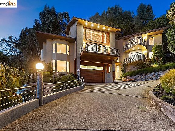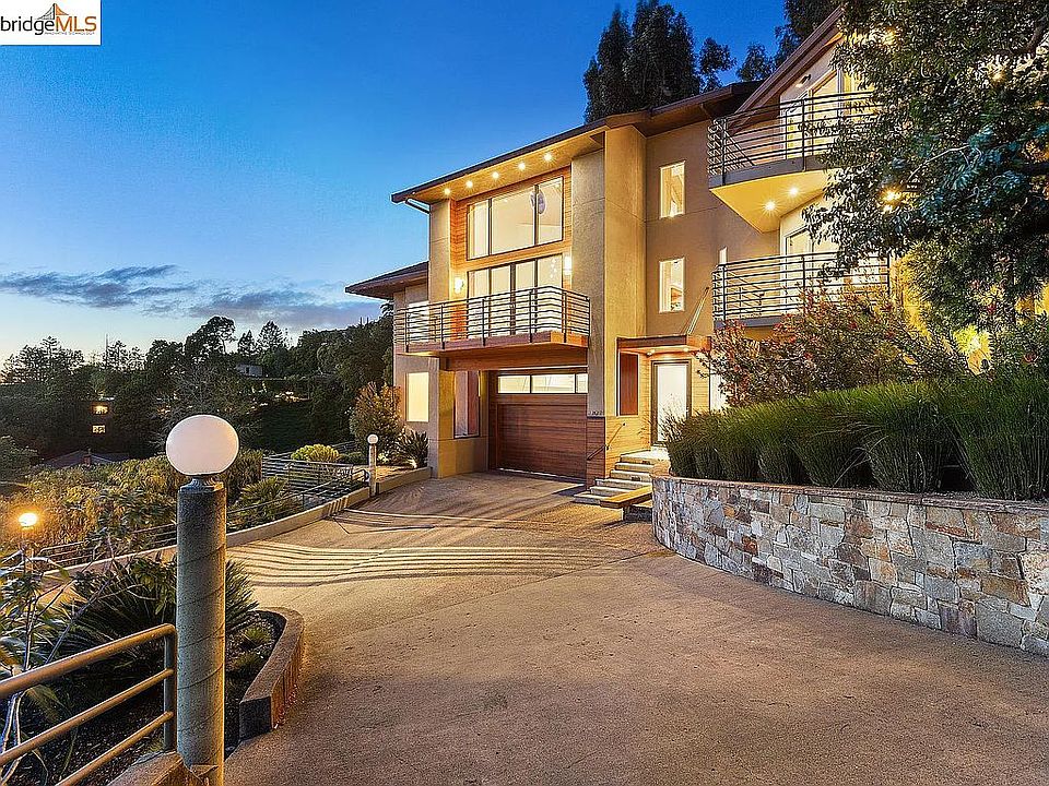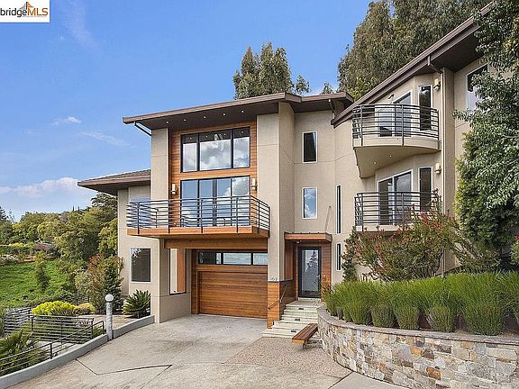 Modern luxury, panoramic views and a great location define this exceptionally rare home in Piedmont. The two and a half story living room features designer glass orb lighting giving the effect of an array of candles floating in water. Sustainably harvested exotic wood wall panels and Venetian plaster unite the living & dining areas. Expanses of glass, bay vistas and daylight from multiple directions contribute to the spatial drama of the home. Upstairs, the luxurious primary retreat includes a private deck, walk-in closet and office space. The soothing, spacious primary bath is enhanced by high-end materials and finishes. Two additional bedroom suites provide plenty of room for all. An additional family room/au pair with separate entrance completes this flexible floor plan. Three bay-facing decks provide a seamless indoor/outdoor connection. Attached is a large 2-car garage with EV charger. Piedmont schools, Montclair restaurants and shops, farmers market and public transportation are all in close proximity.