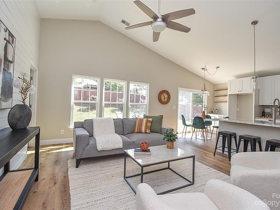 You will be pleasantly surprised at the large open, airy and bright feeling upon entering this home. The family room with its 12 foot vaulted ceilings is open to the beautiful brand new kitchen. This recently, fully renovated home is full of upscale elements. From the commercial grade LVP flooring throughout to the high-quality shaker cabinets and granite countertops in the kitchen and rustic farmhouse touches throughout. As you discover the primary suite, you are first greeted with vaulted ceilings and a shiplap feature wall before making your way into the generous walk-in closet and beautiful en suite full bathroom with quartz countertops and custom, ceramic tiled shower. Both guest bedrooms feature walk-in closets and a shared full bathroom. This house has it all – attached two car garage, fenced in backyard, corner lot, and an open split floor plan.