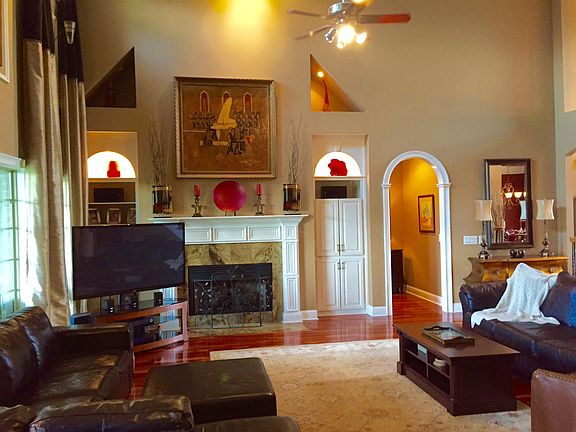2 story brick and stone built in 2004 and extremely open and modern. Hardwood floors throughout! (No carpet to clean or replace) New water heater and disposal this year. Brazilian cherry floors on main; walnut upstairs. TOO many upgrades to list...Vessel sinks in baths, along with wainscoting and granite tile. Tiled screened porch and covered porch. Replaced gazebo and open deck with Trex. Stone walkway and patio. Crown molding is to die for! Lead glass and built in blinds in all entry doors. Updated locks as well. Amazing full 2 story den with breathtaking library upstairs overlooking. Master on main with huge walk in closet that doubles as "safe room". Drapes by Baylor Bone, Fancy Vent air return on main. Wainscoting in foyer, stairs and dining room as well. Ceiling fans in all bedrooms and porches. 3 upstairs bedrooms; 1 with secret entry; another with cathedral ceiling and a loft! Double ovens and a trash compactor compliment the Bosch dishwasher and gas range. Bonus room is large enough for pool table, separate media room and currently 2 arcade machines and a pinball machine with picture frame flooring. Full 3 bay garage deep enough for boat. Privacy is exemplary in this 6 home cul-de-sac with no HOA fees. Flat yard on #14 tee box offers amazing views for miles and the safety of no chance of ever being hit by stray ball. Additional storage in attic and partially concreted area under house with double door access. Electric AC/Gas heat and fireplace.