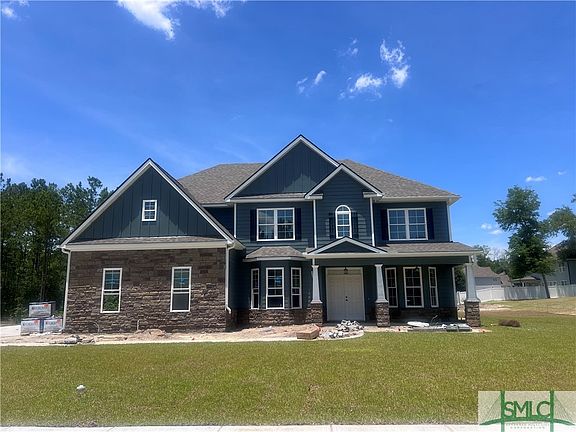 Gorgeous 4000-2 home on half-acre built by Faircloth Homes of Savannah! Expansive lawn including irrigation and sod provide a beautiful setting for your new home. If you are ready to purchase this summer, do not delay! Beautiful white cabinets, hardwood floors, bowed windows are just a few of the features in this home. Granite cabinets in the kitchen and bathrooms, ceramic backsplash tile in the kitchen, dual wall ovens and separate stovetop. Walk-in pantry provide additional room for storage. Five bedrooms, including a bedroom on the ground floor. Separate full bathroom adjacent to the first-floor bedroom. Four bedrooms including the primary are on the second floor. At the top of the stairs a secondary bedroom contains an en-suite bathroom as well. Large bonus room with fantastic windows allow plenty of room for living space.