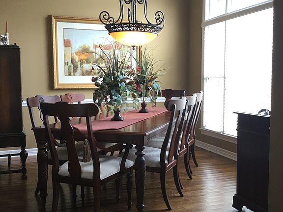 Open floorplan with vaulted ceilings, 4 bedroom, 2 baths located downstairs with large bonus room over garage. Upgrades include hardwood floors, bronze lighting fixtures, tiled backsplash, solid surface counters, and stainless steel appliances in kitchen. Located on quiet street with cul-de-sac in Wynbrooke Subdvision with neighborhood pool and clubhouse access. Nice private, fenced backyard overlooking wooded common area. Conveniently located near shopping and great schools.