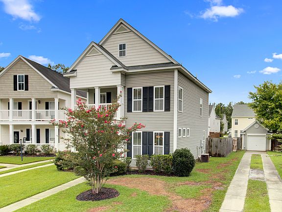 Come take a look at this classic Charleston style home, in the highly desired Liberty Hall Plantation of Goose Creek. This active community features amazing neighborhood amenities such as a large swimming pool, clubhouse, volleyball court, and 2.5 acre wide park! This home is less than 8 minutes from the grocery store, and shops and just ten minutes from the highway. Outside homeowners will love the black shutters framing the windows, showcasing that classic Lowcountry look. The covered front porch has beautiful brick trim, and is perfect for housing a bench or some rocking chairs to relax on! Inside, the entryway greets you with stunning hardwood floors, and a private formal living room on the right. The beautiful natural lighting overflows directly into the kitchen, just a few steps...more. The kitchen features wood cabinets that offer an abundance of storage- in addition to the separate pantry. The kitchen also highlights a lovely eat-in space in addition to the bar stool seating along the counter ledge. It'll be easy to entertain from any angle, as the family room overlooks the kitchen. This cozy room boasts a creamy beige carpet, and plenty of space for a large couch. The focal point is without a doubt the wood burning fireplace, with a black stone frame and detailed white mantle. The vaulted staircase brings you to the second floor, with the master bedroom located directly to the left. The master features a large ensuite bathroom with a double sink vanity, soaking tub, and glass standing shower. Two other spacious bedrooms are on the second floor, which share the hall bathroom. The second story also includes a good sized balcony overlooking the quiet cul de sac. It would be perfect for a porch swing, and a good book! In the backyard the screen porch can be accessed from two double doors in the kitchen. The backyard is secluded by a tall privacy fence, surrounding the lush grass. A concrete path leads from the porch to the detached garage. The garage could be the perfect art studio or storage space with plenty of parking from the extended driveway. You'll want to check out this home in person, because this move-in ready home, won't stay on the market for long!! Come see it today! Use preferred lender to buy this home and receive an incentive towards your closing costs!