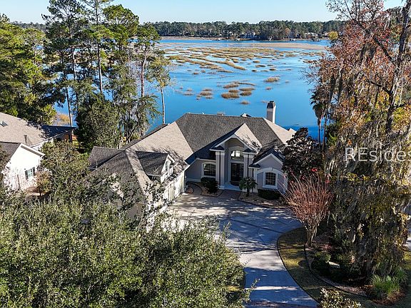 Beautiful Custom home in Riverbend with amazing and breathtaking views of the Okatee River. French Doors throughout the Great Room with arched windows above and a wall of windows in the Carolina and Casual Dining area overlooking the water and marsh with all of its splendor. Sellers made many updates since 2021: New GAF Roof, Replacement of Chimney Stucco and Cap, Seamless Gutters, painted all of the Stucco, new Maytag Washer and Dryer, added a Reinforced Seawall, Paver Walkway and Patio, Stone Mulch all around the home, added Sod, Carrier 15 SEER, 5-ton, 3-zone HVAC, Pella Great Room Upper Arched windows,1st Floor Carpets & 12/23/2025 New Carrier Performance 110,000 BTU 80% Variable Speed Furnace (10-yr. Parts & 1-yr labor Warranty). Enjoy the true chef's/baker's Kitchen including Wolf 4-burner Cooktop with grill, griddle, Warming Drawer, Miele Dishwasher, Sub Zero Refrigerator, Elkay triple Sink, Breakfast Bar Sink, Wine cooler, mounted TV, Walk-in Pantry. Extra fridge in Laundry Room. Energy-efficient, 12" Aerated Concrete Block Foundation Construction reinforced with L-Shaped Rebar which is fire, wind, earthquake, and pest resistant, with greater insulation, and reduced heating/cooling costs. Travertine tile in Carolina Room, Owner's Bath and Shower. Great room has a beautiful gas fireplace, built-in display shelving and storage with a mounted TV which conveys. Comfort height vanities & Toto toilets. Vaulted Carolina Room and Owner's Bedroom ceilings. Closets galore for storage and step-in attic access with closed-cell foam insulation. 15' Great Room, Kitchen and Foyer ceilings. Oversized Garage with Epoxy floor, workshop, Premier Storage Cabinets and a Service-yard Door to paver walkway. Riverbend is a desirable neighbor of 300 homes in 55+ Active Adult Sun City Hilton Head where Residents enjoy three premier golf courses, over 150 clubs, state-of-the-art fitness centers, tennis, pickleball, multiple resort-style pools, a 550-seat Theater, social halls, walking trails, and easy golf cart access to fine dining, healthcare, banks, & shopping.