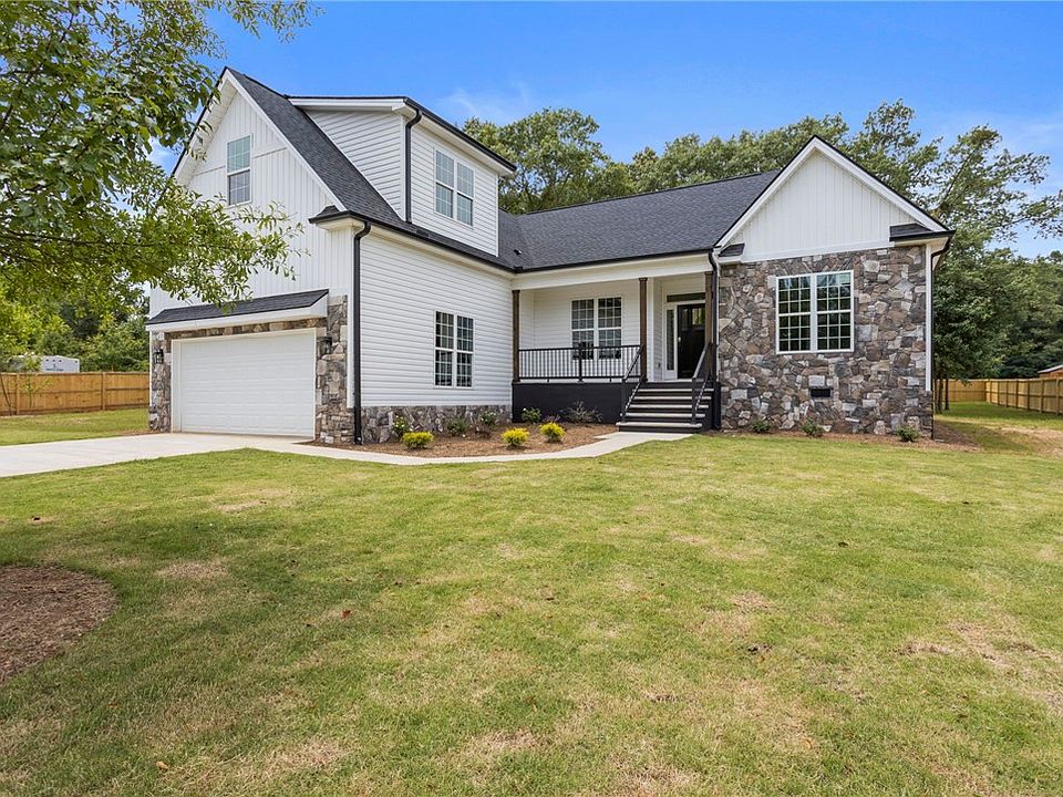 joyrealestate.com. GORGEOUS BRAND NEW CUSTOM BUILT HOME with stone accents features 4 bedrooms (or 3 bdrms with a BONUS ROOM) and 3.5bathrooms plus 2-car garage. There is NO CARPET anywhere in this 2,200 square feet home! Gleaming HARDWOOD FLOORS flow throughout all the living areas, bedrooms and bonus room while all the bathrooms and laundry room are dressed with CERAMIC TILE FLOORING. The kitchen opens to the living room and dining room and offers a large ISLAND, GRANITE COUNTERS, STAINLESS STEEL appliances and a PANTRY. The Living Room boasts a VAULTED CEILING and a full wall of windows allowing for plenty of natural light and overlooking a 16'x10' COVERED DECK and HUGE FENCED-IN YARD. The roomy master bedroom is positioned privately away from the other bedrooms and sports a TREY CEILING with cove lighting. Enjoy a LUXURY ENSUITE with a walk-in closet, FREE-STANDING SOAKING TUB,DUAL SINK VANITY, and beautifully TILED WALK-IN SHOWER with bench, glass door, RAIN SHOWER HEAD and a separate hand-held shower head. You'll never run out of hot water with the TANKLESS WATER HEATER! Conveniently located down the hall is a walk-in laundry room and powder room. Rounding out the 1st floor on the opposite side of the home are two secondary bedrooms and a full bathroom. Head upstairs to find even MORE SPACE!! Including a Full Bathroom with tiled shower!! Use this room as a LARGE 4th bedroom or a BONUS/RECROOM, office or exercise room....You choose! All this and NO HOA! Only 15 minutes to downtown Anderson and 25 minutes to downtown Greenville. Schedule your showing today!