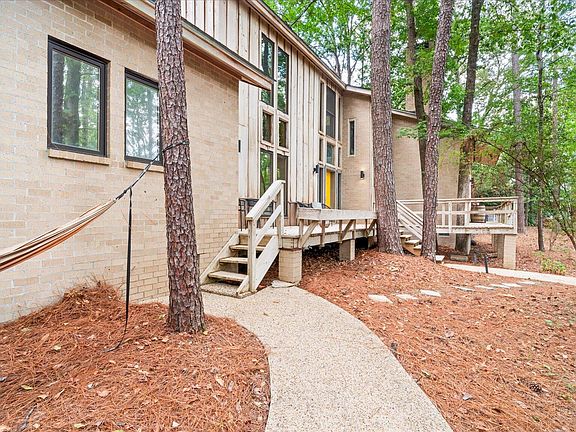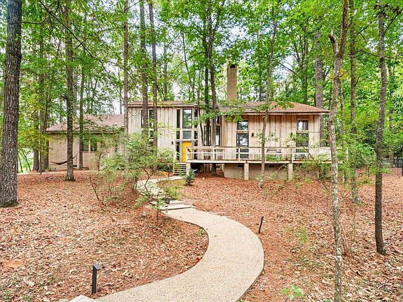 Architectural beauty is the only way to describe this 3 bedroom/2 ½ bath gem in the heart of midtown. Designed to seamlessly blend and merge with nature on a large wooded lot, this house offers ample sunlight and views that transports you from the convenience of living in Midtown to a tucked away custom cabin in the woods. The semi-open floor plan offers an ideal location to host any occasion. Downstairs includes a large primary suite with beautiful wood ceilings, expansive raised wood ceilings in the living room, kitchen with a flex space that could be a breakfast area or siting area, and bonus room with a loft and ladder that could easily be an office, media room, or play room. Upstairs are 2 bedrooms with a Jack and Jill bathroom, large closet and walk in attic. Tankless gas water heater, oven is electric, but is plumbed for gas. Located on a dead
