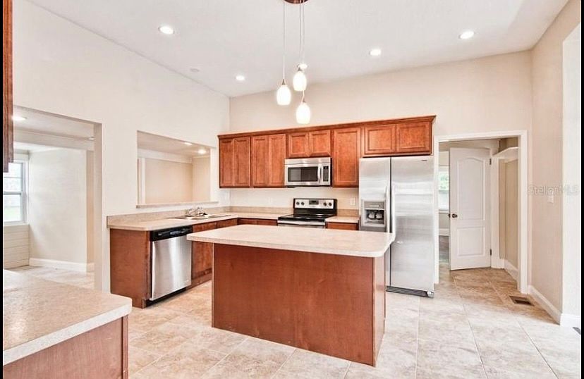 This home with a room for rent is near Lake Ariana in Auburndale, FL. The house has a fully fenced back yard and sits on a half acre lot. Downstairs is the shared kitchen, living room, and dining area. The bedroom on first floor has a closet and bathroom with two sinks & shower with tub. The shared kitchen was updated in 2018 with wood cabinets and stainless steel appliances (refrigerator with freezer, dishwasher, microwave, stove & oven). The fully fenced backyard provides great space to enjoy the outdoors. There is outdoor storage that can be available upon request (bottom level of garage). Owner pays water bill and lawn care. Renter(s) responsible for electric and split monthly cost. Required for move-in: Complete application on Zillow listing ($35 per occupant over 18 years of age). The application includes background & credit check. Sign lease and pay first month rent plus security deposit. Rent is due first of each month. Owner onsite. No smoking on property. Parking is assigned, private drive spaces. Shared spaces: kitchen, living and dining areas, fenced backyard, office area. Owner pays water. Electric bill is split evenly so each room mate in the house pays appropriate portion. Leases available: 1-12 months Required for move-in: Complete Zillow application online (includes a background & credit check), first month's rent + security deposit. No pets.