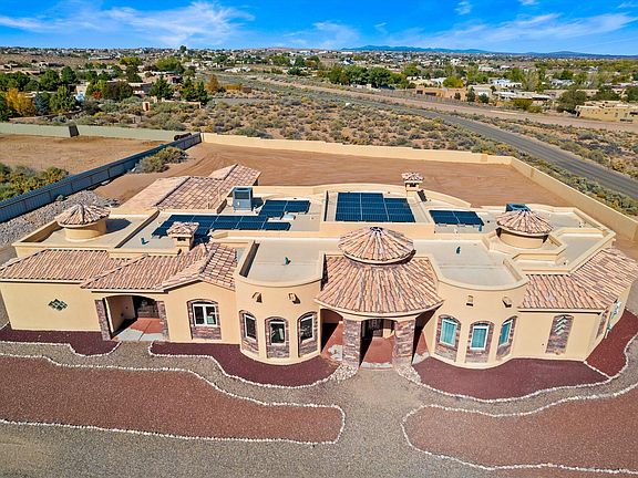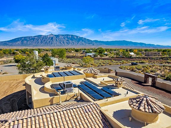 This stunning home will captivate you from the moment you enter. Situated on a corner lot with breathtaking views of the Sandia Mountains, it features 2 newer AC combo units, owned solar panels w/ new inverter, a newer TPO roof (2020), horses permitted and home sold with NO REPAIRS NEEDED. The property boasts 4 bedrooms, 5 bathrooms, an office or bonus room, 3-car garage with a workshop/multi-purpose room and radiant heat throughout the home. Set on 1.06 acres with private well/septic system. This home has undergone numerous upgrades for your enjoyment and a peace of mind buying a well cared for home. This home offers everything you need--discover more details...