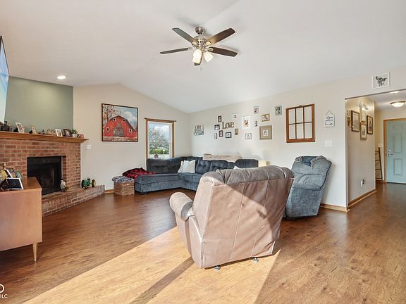 This spacious 3/Bed 2/Full Bath all BRICK ranch situated on a large private homesite will be sure to please! This former model home is a split floor plan featuring a large master suite w/walk in closet, eat-in kitchen w/breakfast bar, a large living rm with wood burning fireplace, dining room that could be a play room/office/reading room, laundry room and 2 car attached garage. Home is all electric and has a 14x16 shed with electricity and air conditioning making it a great workshop/hobby area. Very well maintained property both inside and out. You will REALLY enjoy this HUGE back yard (0.61 acres) evening bonfires and watching those Beautiful Sunsets. Oversized, Finished 2 Car Garage. Long Driveway for that Extra Parking you may need. Located in the small quaint town of Tipton with easy access to US 31, Charming shops, Restaurants and many fun festivals and fairs.