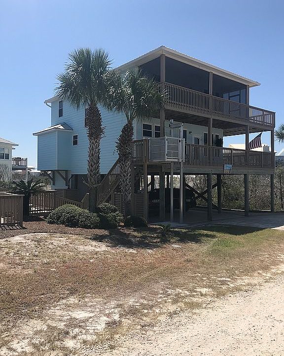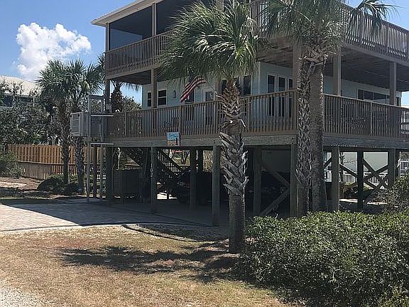 Enjoy gulf views & the great breezes, at this charming beach cottage. This home features an open floor plan for casual entertaining with an open living, dining & kitchen area that opens to the wrap around deck. Also, located on this floor is a master suite with an ensuite bathroom & separate half bath for guests. As you enter the 2nd floor you continue the open feeling as you enjoy the exposed staircase that overlooks the living area & the large bank of windows. Located on the 2nd floor are 3 additional bedrooms & 2 guest bathrooms. The generous yard is equipped with an in ground pool, 3 compartment fish cleaning station, & outside shower. The large covered carport has plenty of room to park all your toys & have a good ole fashion fish fry. This beach home is just steps to the beach. Who is ready to sink their toes in the sand? Brokered And Advertised By: BEACH PROPERTIES REAL ESTATE GROUP Listing Agent: KAYE HADDOCK