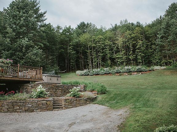 Lovely, spacious 3 bedroom, 3 bath home with hardwood and tile floors, copious windows and sliding glass doors, gorgeous perennial gardens, a nice deck, a useful yard, trails and total privacy and great neighbors. 2 outbuildings for storing wood and tools. Two heat pumps and a wood stove means you don't need to rely on the propane baseboard heat. Heat pumps also effectively provide central air.