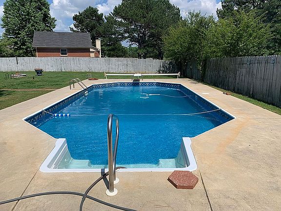 Great home for parties! Full brick on cul-de-sac. New laminate floors '07. Huge rec room for media, home office, hobbies. Bright, friendly kitchen w/island & breakfast area open to privacy-fenced back yard. Sparkling pool (16x32) equipped w/Polaris, cover, and solar blanket. Pool house (10x20) has power, stereo, refrigerator. Door raises for equipment and tables. Storage bldg (10x14) has power, workbench. Oversized one-car garage w/cabinets. Driveway widened two feet to accommodate four cars! WITH POOL AND POOL HOUSE