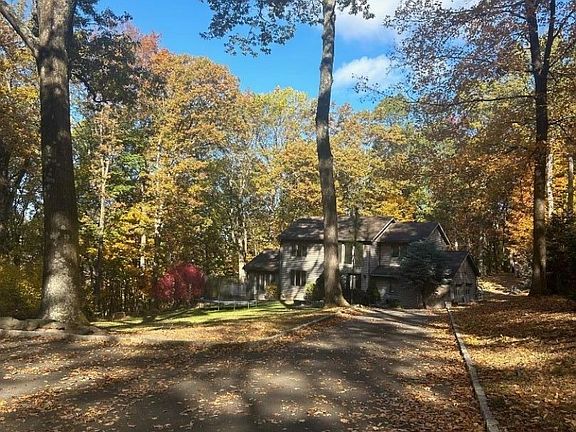 Nestled on a private, wooded lot, this beautiful custom home offers space, comfort and style throughout. The main level features a formal living room and dining room accented with elegant custom molding. The eat-in kitchen boasts granite countertops, stainless steel appliances and plenty of cabinetry for storage. From the kitchen, step down into a cozy family room with a vaulted ceiling and sliding doors leading to a large wraparound deck - perfect for relaxing or entertaining outdoors. An updated powder room, laundry room and convenient garage access complete this level. Upstairs, the primary suite offers a spacious walk-in closet and ensuite bathroom. Three additional bedrooms and beautifully updated main bathroom provide plenty of room for all. The finished basement includes a built-in bar and versatile space ideal for a home office, gym or recreation area. Outside, enjoy the private fenced backyard, complete with a patio and above -ground pool - the perfect setting for summer fun and quiet relaxation.