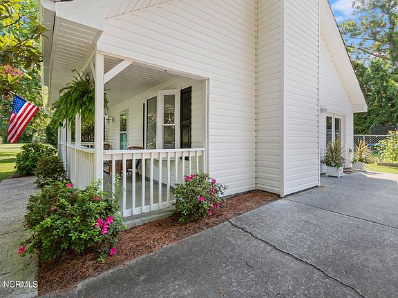 Don't miss out on this charming home that sits in a desirable neighborhood, in beautiful Hampstead N.C. This home is only minutes away from Ironclad golf course, and lovely Kiwanis Park. Outside features include mature landscaping, a fenced in yard, and a large shed that could be used for storage or an awesome workshop. Inside you have stainless steel appliances, new LVP flooring in the kitchen, dining room, and laundry room. New gutters installed in 2023, a generator hook-up installed in 2022, has new, beautiful French doors, and a nice front porch to enjoy your morning coffee. Let's not forget the wood burning fireplace that gives this home a warm and homey feeling. Book your appointment today, this home won't last long!