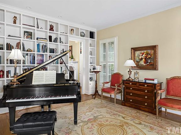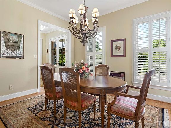 Your private oasis built on one of the larger and lovely wooded cul-de-sac lots in Meadowmont. Stunning detail features include a custom built sauna in the master bath, tiled pet/foot shower in the laundry room and a 1st floor home office. Breakfast room and back porch overlook breathtaking views of woods, pond/waterfalls & wildlife. Ideal layout w/large master suite, 2 bedrooms sharing a buddy bath and 4th w/direct access to hall bath. Bonus room or 5th bedroom. Walk up attic storage! CHCCS schools.