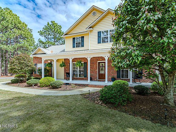Beautiful bright Southern Traditional 4 bedroom, 3 ½ bath home on a quiet flat .75-acre corner lot in the desirable Seven Lakes West neighborhood. For your outside enjoyment, this home features a covered front porch overlooking the meticulously landscaped yard, which includes hardy zoysia grass, flowering dogwood trees, mature seasonal flowering shrubs, and a large deck overlooking the spacious sodded backyard. Inside you are treated to hardwood and tile floors in main level living areas, granite counters throughout, and a half bath in the foyer. In this open concept the kitchen and breakfast nook overlook the living room. The kitchen comes complete with stainless appliances, island, and tile backsplash over perimeter counters, and maple cabinetry. The main level also features a formal dining room, laundry, and primary bedroom with ensuite bath, garden tub, double sink vanity, walk-in shower, and spacious walk-in closet. This home offers accommodations for guests or family on the upper level with 3 bedrooms, walk-in closets and one with a sitting room, 2 full bathrooms, and a large finished bonus room. The upper level carpet was replaced with brand new durable LVP flooring (installed 9/23) and it features hardwoods in the hallways. Parking is made easy with a large driveway and attached 2-car garage. Community amenities include a marina, access to the 800-acre Lake Auman, nature trails, playgrounds, swimming pool, community center, tennis courts/pickleball. Membership at the famous Beacon Ridge 18-hole golf course is available. Make this your new home!