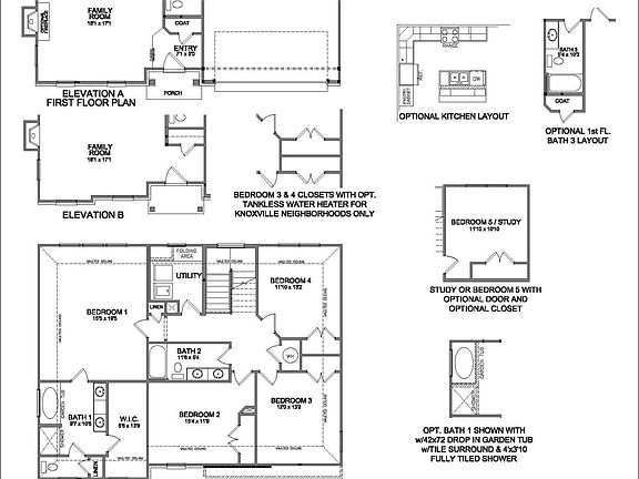 The Greenfield offers a great first floor layout with a large family room opening to a spacious island kitchen and breakfast area. The kitchen features an island design with countertop dining and a corner pantry. The first floor includes a coat closet and powder room, conveniently located off the entry hall, as well as a study or optional bedroom at the rear of the home. Upstairs are the primary suite and three additional bedrooms, all with vaulted ceilings. The primary suite includes a large walk-in closet, luxurious bath with double bowl vanity, separate shower, and garden tub. The hall bath features a spacious double bowl vanity. A separate utility room with folding counter is conveniently located on the second floor. Additional primary bath upgrades are possible, and a loft can be configured in lieu of bedroom #4.
