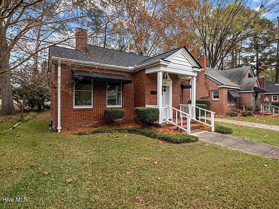 Not too big, not too small, but JUST RIGHT! Let your next home be this charming brick bungalow with big classic style and character in a small package. 2-bedrooms, 1 ½ baths. Enjoy one-story living in a house that is move-in ready! Don't let it's compact façade fool you. It has a large living room with a gas fireplace and a large dining room with beautiful wood wainscoting, updated kitchen, walk-in pantry, laundry area with washer/dryer included! This wonderful home is in excellent condition and has a brand new roof (October 2024), new half-bath off of the back bedroom, sump pump, new exterior awnings and a fresh and new back door. The deep back yard features a patio and garden shed (with window boxes, no less) and plenty of room leftover for a flower or vegetable garden. Located just blocks from historic downtown Washington, the Pamlico River, hospital, shopping and entertainment. If you're tired of cookie-cutter boxes, then make an appointment to see this cutie-pie!