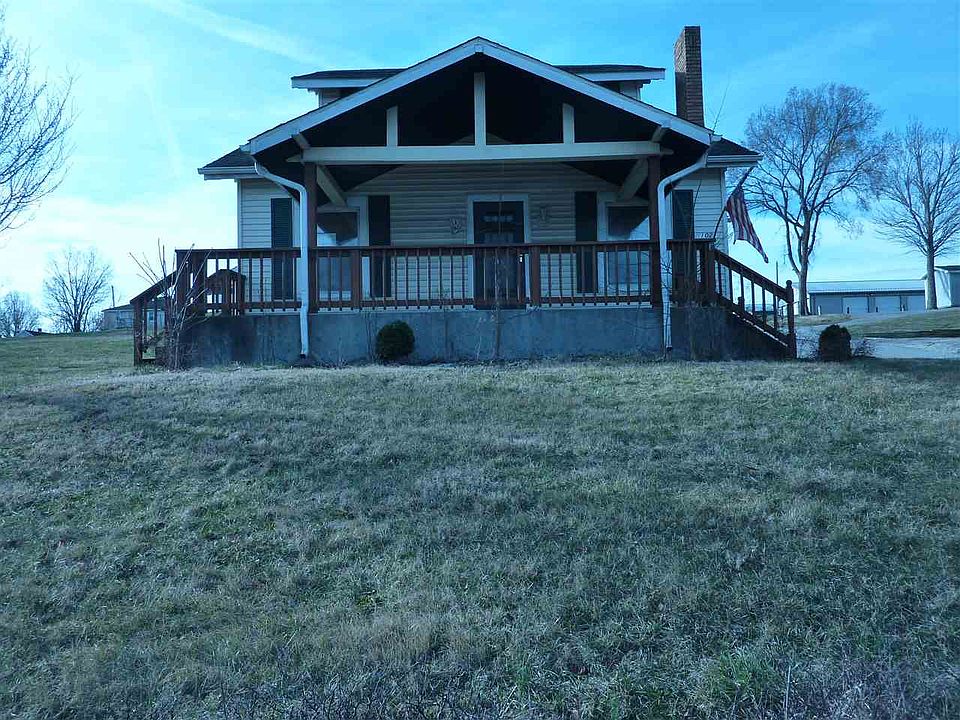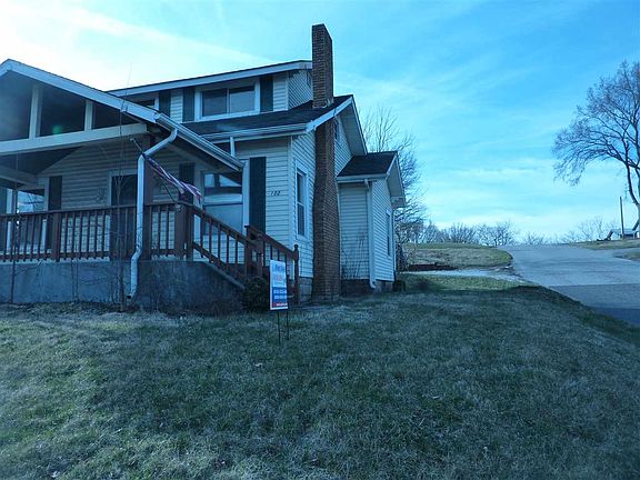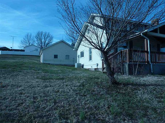 Older home, it has 3 bedrooms, 1 bath with brick fireplace and charming wood work. Has a full unfinished basement and covered front porch and a 3 car detached garage right behind the home. Sets on a corner lot.