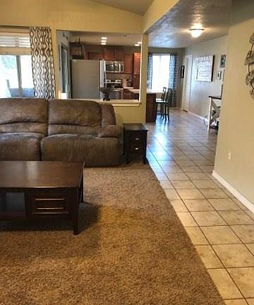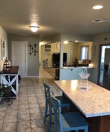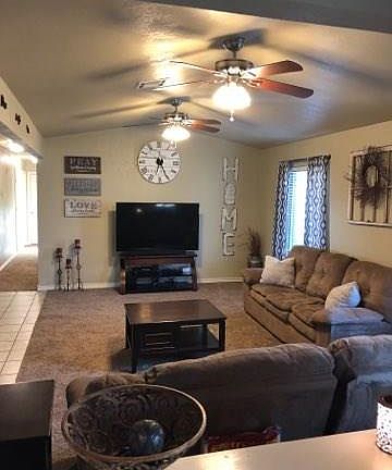 Totally Updated home within last 4 years. Updates include new roof, gutters, overhead garage door, windows; tile and carpet floors; new kitchen cabinets, counters, faucets and stainless appliances; new master bath with tiled glass-enclosed shower, vanity, mirror, all plumbing fixtures and walk-in closet; all new baseboards, case and doors (both interior and exterior); lighting; completely repainted inside and out; HVAC system approx 5-7 yrs old. Living room features vaulted ceiling and is open to dining and kitchen. Kitchen features an island and cabinet style pantry with stainless appliances. Bedrooms are split with master suite on one end and 3 guest bedrooms plus 1 1/2 baths on opposite end. Attic conversion features a bonus room with a closet so could be 5th bedroom if needed. Outside offers large chain-link fenced backyard with storage building; covered patio; storm cellar; some mature trees and nice landscaping.