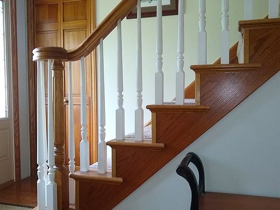 Beautiful, well-built home on the edge of town with a partially finished basement and a pole barn! This spacious home has an open floor plan with nine-foot walls on the main floor and a family room with vaulted ceilings. Hardwood floors, a wood-burning fireplace, and custom crown moulding lend both warmth and elegance. Noteworthy features include an office and a quality kitchen with stainless steel appliances and a pantry. A main floor master bedroom includes a recently remodeled master bath with a separate glass-enclosed shower and a soaking tub. Three additional large bedrooms and a bath are upstairs. Modern, neutral colors throughout. The finished basement has nine-foot poured walls and plenty of space for living and storage. In addition to a large entertainment room, the basement area also has a fitness room and a workshop. Outdoor spaces include a brand-new deck and a 28 x 30 pole barn. Flowering trees in a park-like setting complete the space, making this home a must-see!