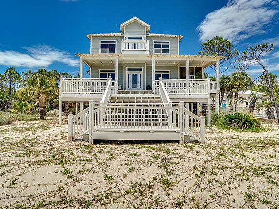 Gulf Front well appointed home on Indian Pass that truly represents "Old Florida." The spacious lot and home provides seclusion, stunning gulf views, and expansive beach. The open floor plan on first level has a foyer, bedroom, full bath w/shower, dining room, kitchen with island, living area and sitting area. The second level has master bedroom/bathroom with open deck, 2 bedrooms, full bath, laundry and sitting area. Expansive beachfront, screened and open porches, massive outdoor shower on main level. Many features included in this home are an elevator, granite counter tops, marble flooring in foyer, maple cabinets, extensive interior storage, and Epoc decking. Added bonus, the community pool is adjacent to home Great vacation rental or could be your "forever" home!