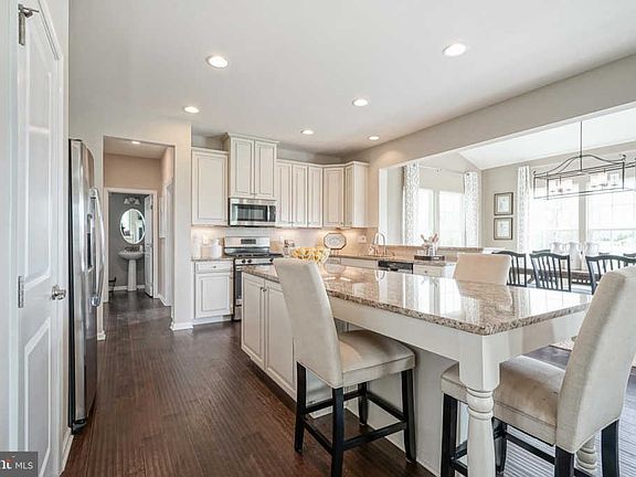 Now is your chance to own a former model home! This desirable Raveena model home has been upgraded throughout and offers all the amenities you need for modern life in a timeless design. Walking in from the covered front porch, the foyer greets you and leads to a generous family room straight ahead, with formal living room and dining room to either side. The family room boasts added charm thanks to a gas fireplace. The ample eat-in kitchen features white 42" cabinetry throughout, an upgraded, oversized island and overlooks the morning room with breakfast bar. Morning room also has double door leading to the spacious composite deck and landscaped rear yard. This is a cook's paradise with plenty of room for entertaining. Off the kitchen is a large home office, connected to the living areas but still offering privacy. Next to the home office is a powder room and convenient family entry. Upstairs are 4 bedrooms and 2 baths standard, along with coveted 2nd floor laundry. The owner's suite is luxurious and features stunning tray ceiling, a huge walk-in closet and private bath with double vanity and large shower. The three additional bedrooms are equally spacious and share a hall bath with convenient double vanity. The basement is full of add-ons as well with an oversized finished area providing ample space for multiple areas. Think family room, play area, man cave, etc. A full bath adds convenience with a second room behind a door perfect for guests or private home office tucked further away from the bustle of the main level. An additional space beneath the breakfast room is ideal for a bar! All this conveniently located in East Greenwich; just minutes from 295 into Delaware & Philly as well as a multitude of area shopping, dining and entertainment options. Don't miss your chance to own a model home without the wait!