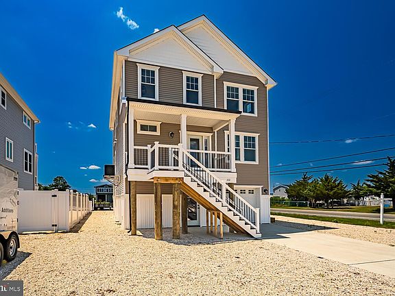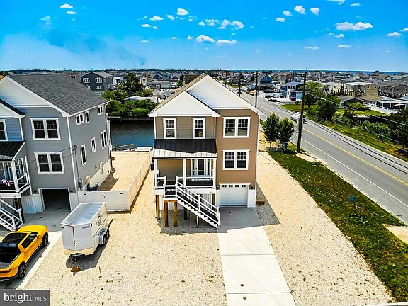 This absolutely stunning **Waterfront New Construction** could be your home here in the Great 08087! The attention to detail shows through the amazing craftsmanship and design of this home. The home's ground floor is all garage/storage with flood vents, windows, a garage door, a front door and a rear door. There is an interior stairway leading to the main floor of the home. The main floor has an open free flowing floorplan featuring a gorgeous kitchen with granite countertops and center island, subway tile backsplash, soft close cabinets and drawers, stainless steel appliances and upscale lighting. The kitchen/dining area are open to the living room with the built in gas fireplace being a center point for both. There is a full bedroom on this level which can easily be your home office as well as a the laundry room and a half bathroom. The shadowboxing on the walls throughout the first floor is just gorgeous. This level also features luxury vinyl plank flooring. Just off the kitchen and living room through the sliding glass doors is the fiberglass deck with incredible views of Mystic Island. On the 3rd level you will find a nice open hall area, perfect for reading chair, two nice sized bedrooms, Jack and Jill style, that share a full bathroom with double sinks and granite counter tops. The rear bedroom has a sliding door which takes you to the upper fiberglass deck. Each bedroom has great closet space. The Master Suite is stunning with its size, ceilings, walk in closet, full bathroom with tiled walk in shower and granite countertops. There is a sliding glass door to give access to the upper fiberglass deck, this deck has views to forever and then some. There is a built in elevator shaft which is pre wired and right now is presented as 3 large closets, one on each floor. This home features economical gas heat, central air and has public water and sewer. This is truly a must see home, bring the family and your water toys! There is plenty of room for both!