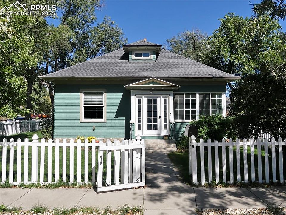 Beautiful Old North End charmer, this 1909 bungalow will pull you in with its original charm and timeless updates. This home features a functional floor plan with lots of natural light from the large windows and 10' ceilings. This home offers lots of updating; the large master bedroom offers a walk-in closet, a newly updated full bath, an updated kitchen with all appliances, a large formal dining room with a Van Briggle fireplace, a bright open living room, and a cozy enclosed front porch complete the main level. The upper level offers a large open bedroom area that can converted into an office, etc. The basement offers lots of storage. The yard is nicely landscaped, offering many mature shade trees and a private back patio. It is located 1 block south of Penrose Hospital and close to downtown, schools, and shopping. Park two blocks away, convenient to a major hospital, charming neighborhood, front porch to watch the snow storms. This home offers a lot of updating, including New vinyl windows throughout, newer high-impact roofing, an updated furnace and central air conditioning, updated plumbing & electrical systems, and an updated sewer line. * This home has been well-maintained and is in Great Condition.*