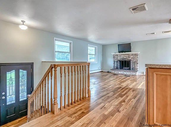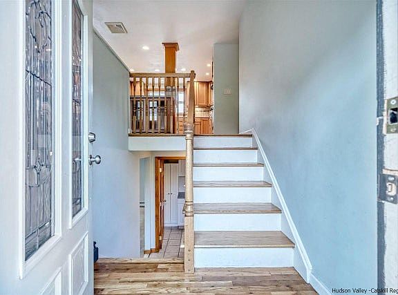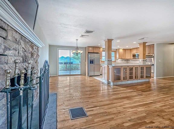 Located in the Hamlet of Port Ewen is this 4/5 bedroom home situated on a third of an acre. Circular driveway offers curb appeal along with mature landscaping as you enter inside. Upstairs has an open kitchen with large center island along with stainless steel appliances, wood cabinets and gooseneck faucet to make this kitchen complete. Living room is open to the dining room and kitchen which is a great option for entertaining. There is a wood burning fireplace to set the vibe. Sliders off the dining room will lead you to the back deck which overlooks the back yard. Down the hallway you will come across the guest bathroom along with a separate laundry room in addition to the office. As you proceed there will be 3 bedrooms all very generous in size with closets to match. The master bedroom is at the end with high ceilings to give a dramatic look with plenty of natural light to shine in. Master bathroom has double sink vanity, jacuzzi style tub with separate shower that is all tiled. Downstairs in this home has a large family room along with sliders that lead you to the patio. There is also an additional room which could be used as a playroom/media room or even a home gym. All of this and a two car attached garage. This home offers a very versatile floor plan and would be great possibility for a mother/daughter and it is also offers an easy commute to Poughkeepsie or Kingston. Don't miss out on this opportunity as it may only knock once.