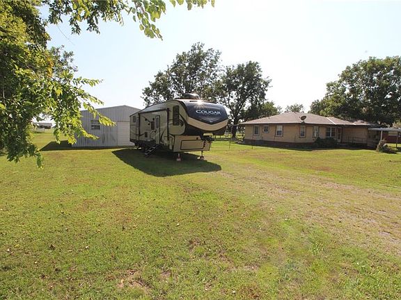 Nice rear patio with nice sliding glass doors off the dining room. Double carport, Large open kitchen and dining area, huge pantry, most all the floor covering is a realistic wood grain look vinyl. White vinyl double pane windows throughout. 3 large buildings on the property, one is 1,200 sq ft with a HVAC system, lots of elect. outlets, concrete floor, fully insulated, tall ceiling and a built-in office. The 2nd metal building is approx. 600 sq ft with a concrete floor, overhead door, and electricity. The 3rd large building is large & functional but needs some work. Gazebo in the back, huge pecan trees. The converted garage is incl in the sq living living area. This conversion includes a window unit for H&A, and a closet. Could be a 4th br, sewing room, office or converted back to a garage. The mock fireplace in the living room does not stay. The safe bolted to the floor will stay. This listing consists of 2 separate parcels. Both are included in the approx. size of the lot.